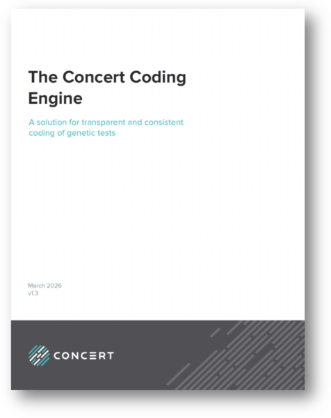 Concert developed a novel solution in 2019 – the Concert Coding Engine – which translates each genetic test into a single code or code combination. Since the launch of this solution, many health plans have instituted requirements for labs to code according to the Concert coding standards for reimbursement, leading to outcomes that benefit plans, labs, and most importantly, health consumers.
